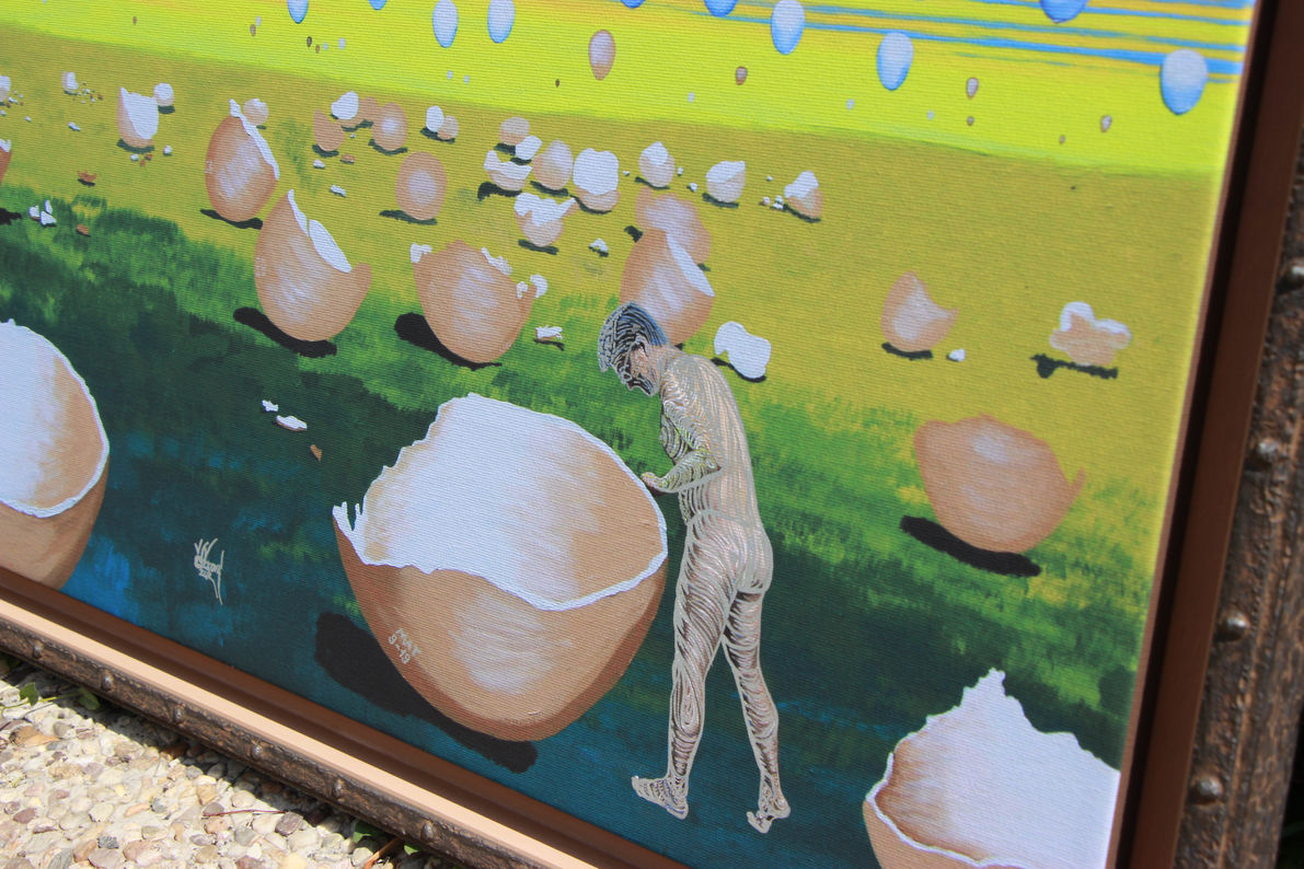 Prví obrazy na motivy ,,roboti" vytvořila autorka jako olejomalby na plátnech